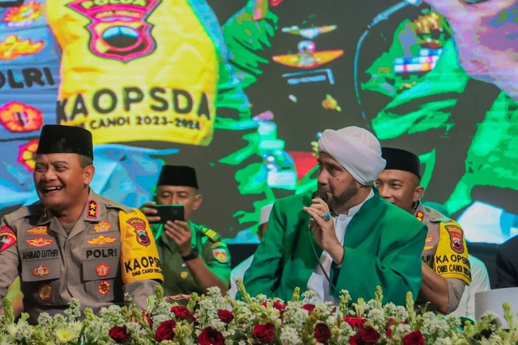 “Kerjasama yang baik antara kepolisian dengan para kyai ini terus kita lanjutkan sampai akhir hayat bukan hanya sampai pada pemilihan gubernur, walikota atau bupati. Indonesia harus aman  Indonesia harus damai, Indonesia harus kondusif, tidak boleh ada permasalahan-permasalahan apapun, yang ada hanya kenikmatan dan keberkahan, ” tutur Habib.